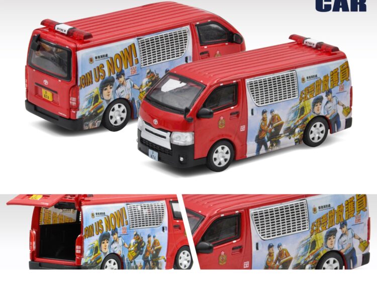 Brand : Toyota Model : Hiace Description : 1/64 Toyota Hiace Van (F874) HK Fire Department, red/graphics Manufacturer : Era