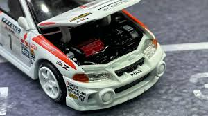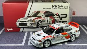 Brand : Mitsubishi Model : Lancer Description : 1/64 1997 Mitsubishi Lancer Evo IV #1 Winner Rally de Catalunya, white/red
