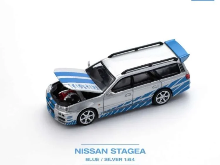 Brand : Nissan Model : Stagea Description : 1/64 Nissan Stagea, blue/silver Manufacturer : Pop Race Limited Scale : 1/64