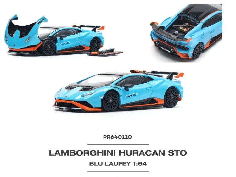 Brand : Lamborghini Model : Huracan Description : 1/64 Lamborghini Huracan, sto blu laufey/arancio xanto Manufacturer : Pop Race Limited