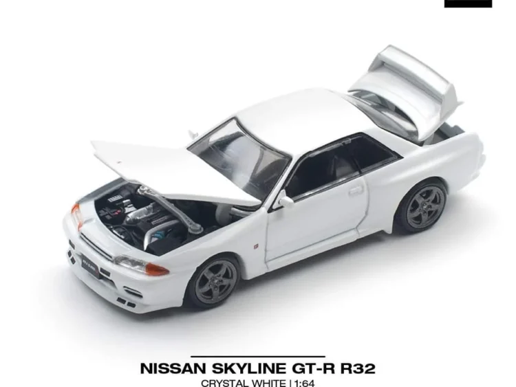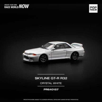 Brand : Nissan Model : Skyline GT-R R32 Description : 1/64 Nissan Skyline GT-R R32, crystal white Manufacturer : Pop