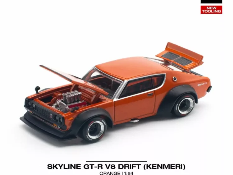 Brand : Nissan Model : Skyline GT-R V8 Drift Description : 1/64 Nissan Skyline GT-R V8 Drift *Kenmeri*, orange Manufacturer