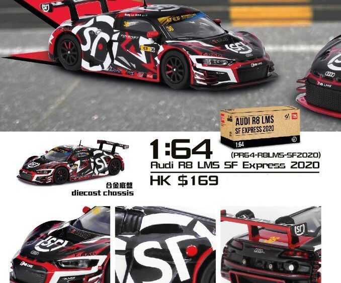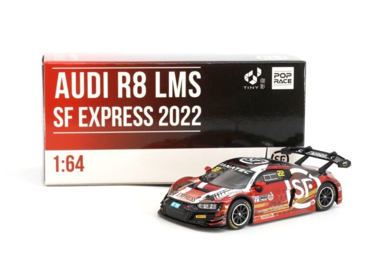 Brand : Audi Model : R8 LMS Description : 1/64 2022 Audi R8 LMS SF Express, red/black Manufacturer : Pop