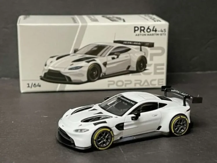 Brand : Aston Martin Model : Vantage Description : 1/64 Aston Martin Vantage GT3, white Manufacturer : Pop Race Limited