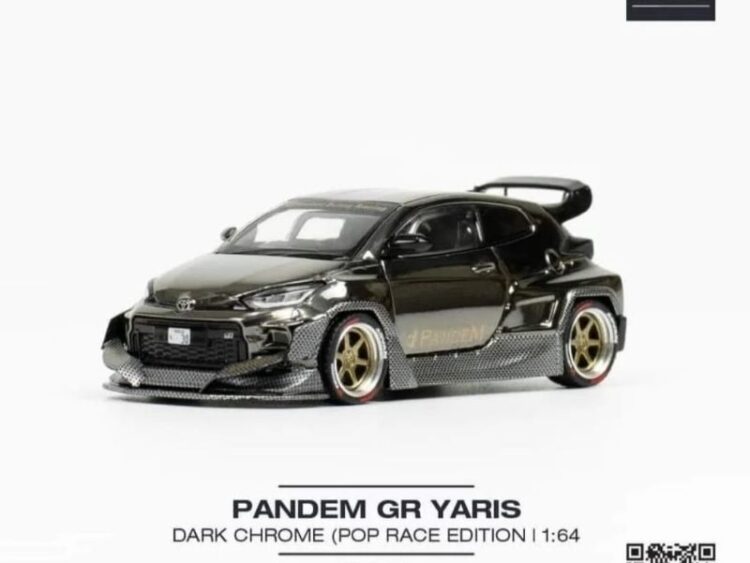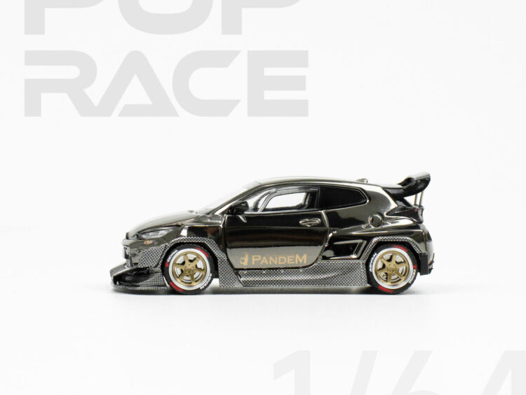 Brand : Toyota Model : Pandem GR Yaris Description : 1/64 2023 Pandem GR Yaris, black chrome Manufacturer : Pop