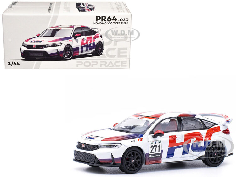 Brand : Honda Model : Civic Type R Description : 1/64 Honda Civic Type R (FL5) #271, white/red/blue Manufacturer :