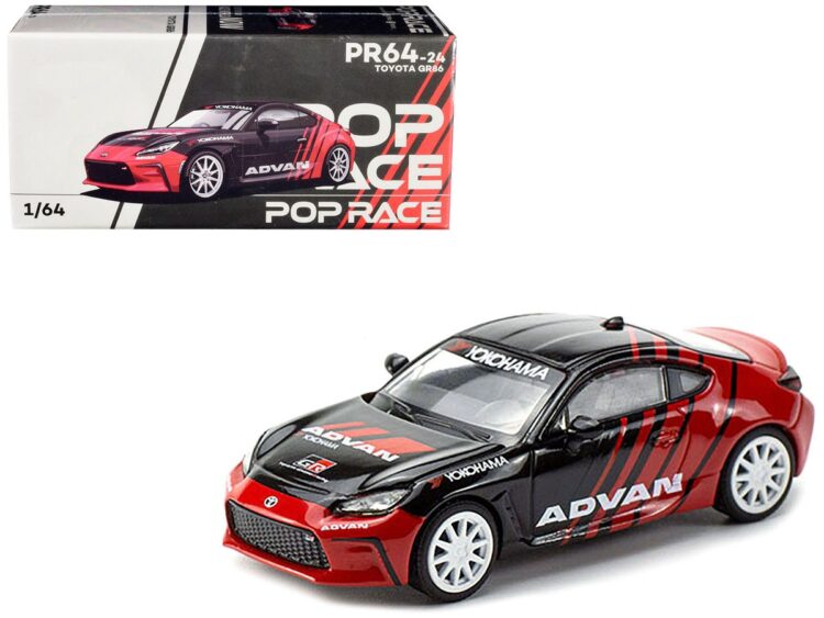 Brand : Toyota Model : GR86 Description : 1/64 Toyota GR86 *ADVAN*, red/black Manufacturer : Pop Race Limited Category :