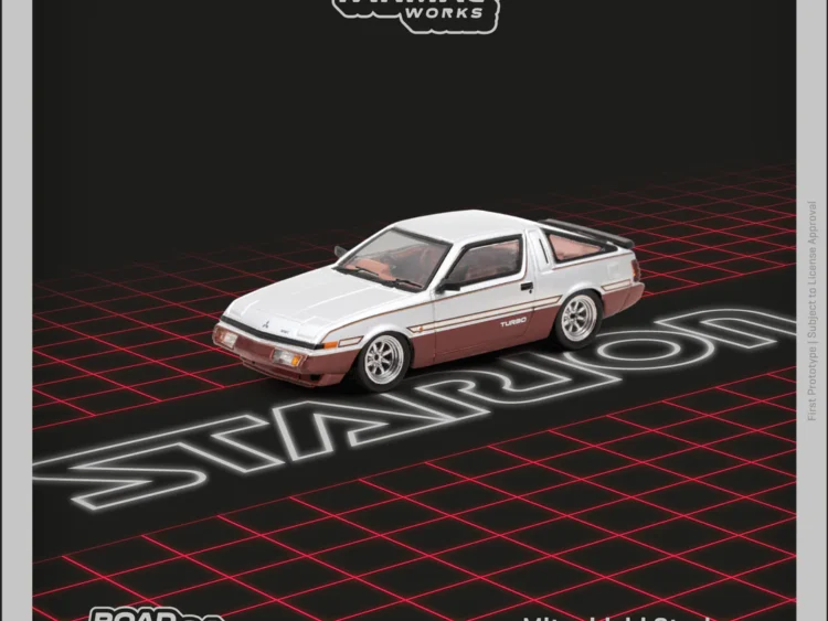 Brand : Mitsubishi Model : Starion Description : 1/64 Mitsubishi Starion, silver/dark red Manufacturer : Tarmac Category : Street cars