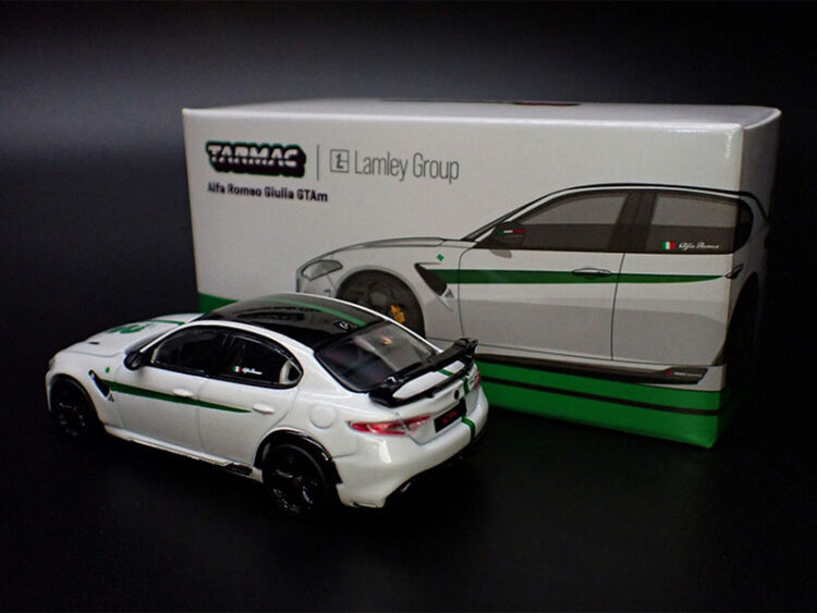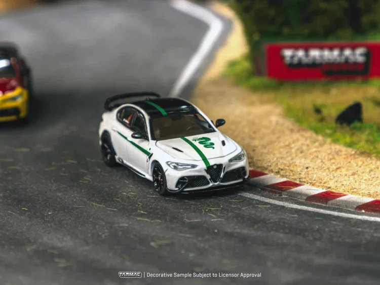 Brand : Alfa Romeo Model : Giulia Description : 1/64 Alfa Romeo Giulia GTAm, white/green Manufacturer : Tarmac Scale :