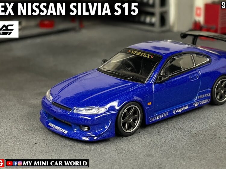 Brand : Nissan Model : Silvia S15 Description : 1/64 Vertex Nissan Silvia S15, blue metallic Manufacturer : Tarmac Scale