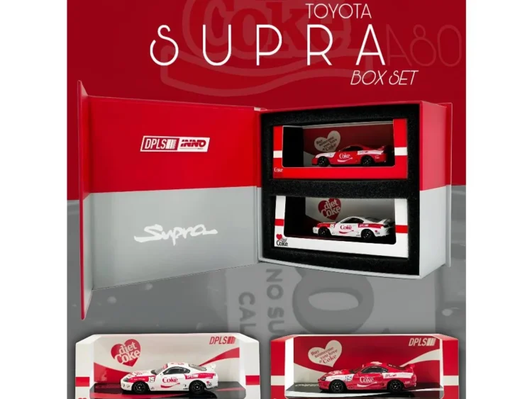 Brand : Toyota Model : Supra A80 Description : Inno64 x DPLS 1/64 Toyota Supra (A80) *Coca-cola* Box Set, red/white