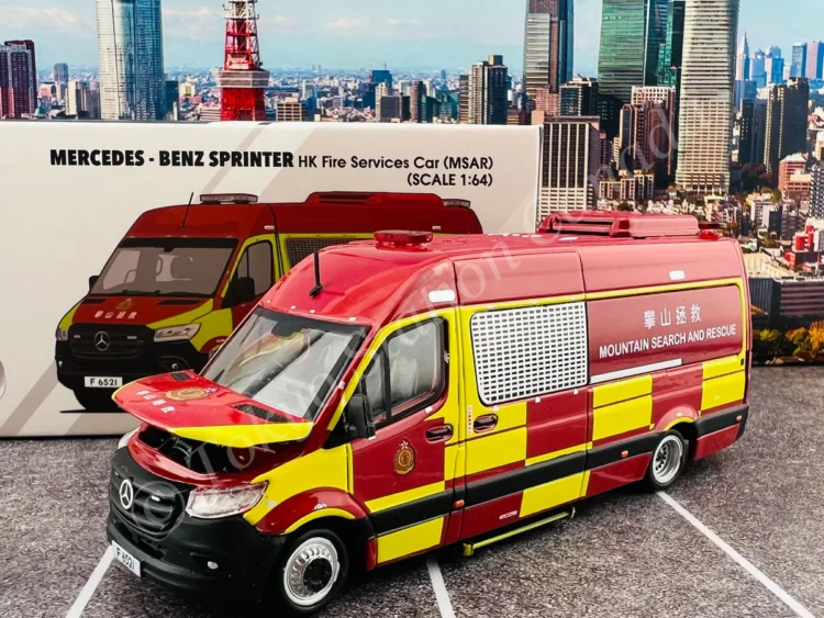Brand : Mercedes Benz Model : Sprinter Description : 1/64 #03 2021 Mercedes Benz Sprinter HK Fire Service Car (MSAR),