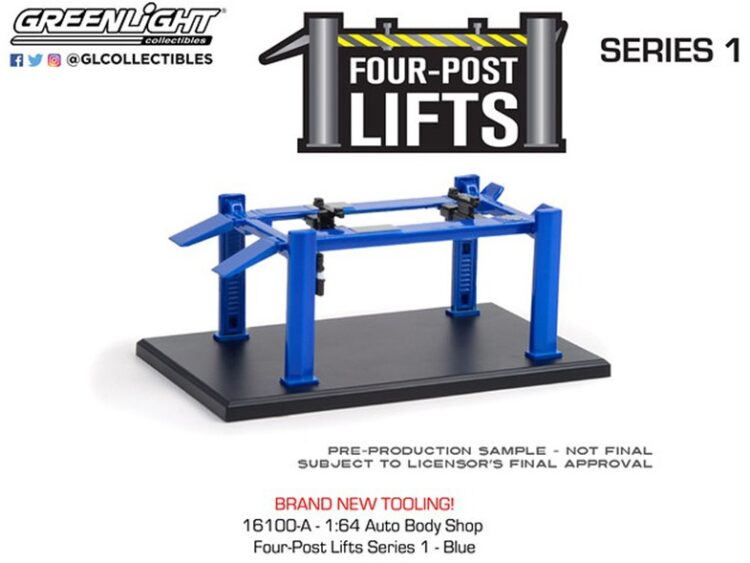 Brand : Accessoires diorama Description : 1/64 *Four-Post Lift Series 1* Auto Body Shop, blue Manufacturer : GreenLight Category :