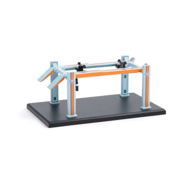 Brand : Accessoires diorama Description : 1/64 Gulf Oil *Four-Post Lift Series 1* Auto Body Shop, light blue/orange Manufacturer :