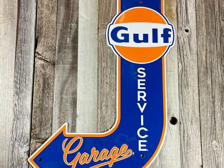 Metal Tac Signs, Gulf Service Garage 28 x 43 cm Aluminium Bent Arrow