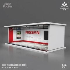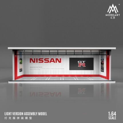Brand : diorama Accessoires Model : Nissan with light Description : 1/64 Parking Garage *Nissan with light *, white/red Size:
