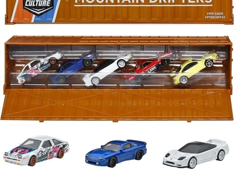 Mountain Drifters Car Culture mix of 5 cars in a Special Container Packaging.