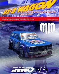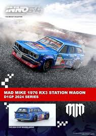 Αρχική σελίδα Diecast Cars 1/64 Inno64 1/64 1976 Mazda RX3 *Mad Mike* Station Wagen D1GP Series 2024, blue