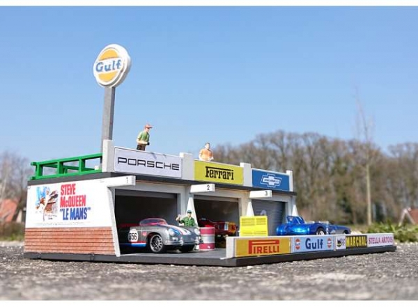 1/64 Pitlane Gulf Diorama. Good for 3 to 5 1/64 (3inch) models, wooden modelkit.