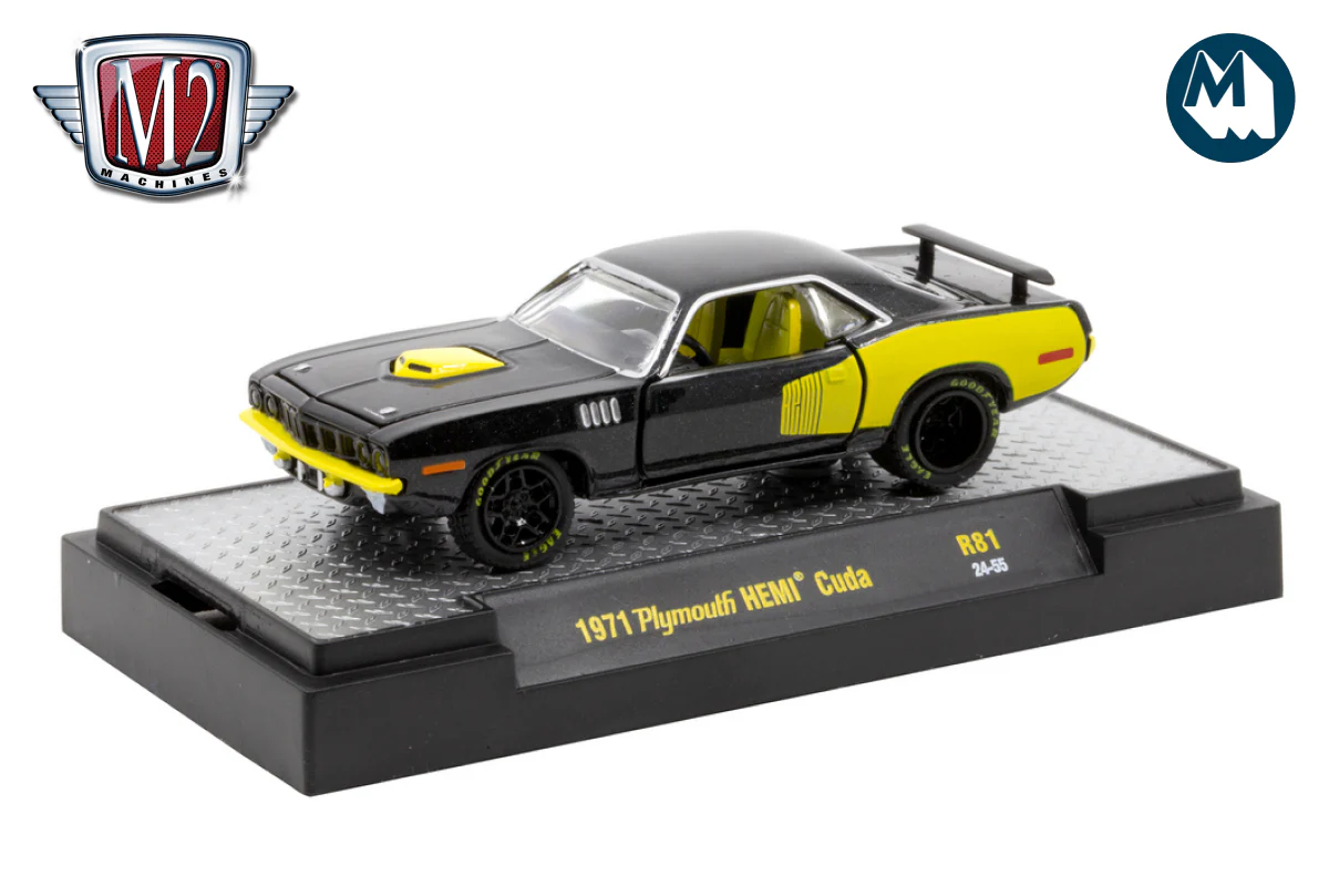 M2 Machines 1:64 - 1971 Plymouth HEMI Cuda – Black/Yellow R81 24-55