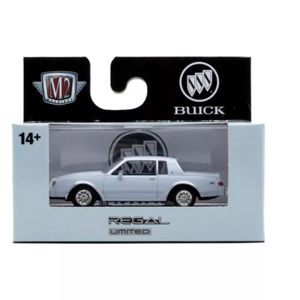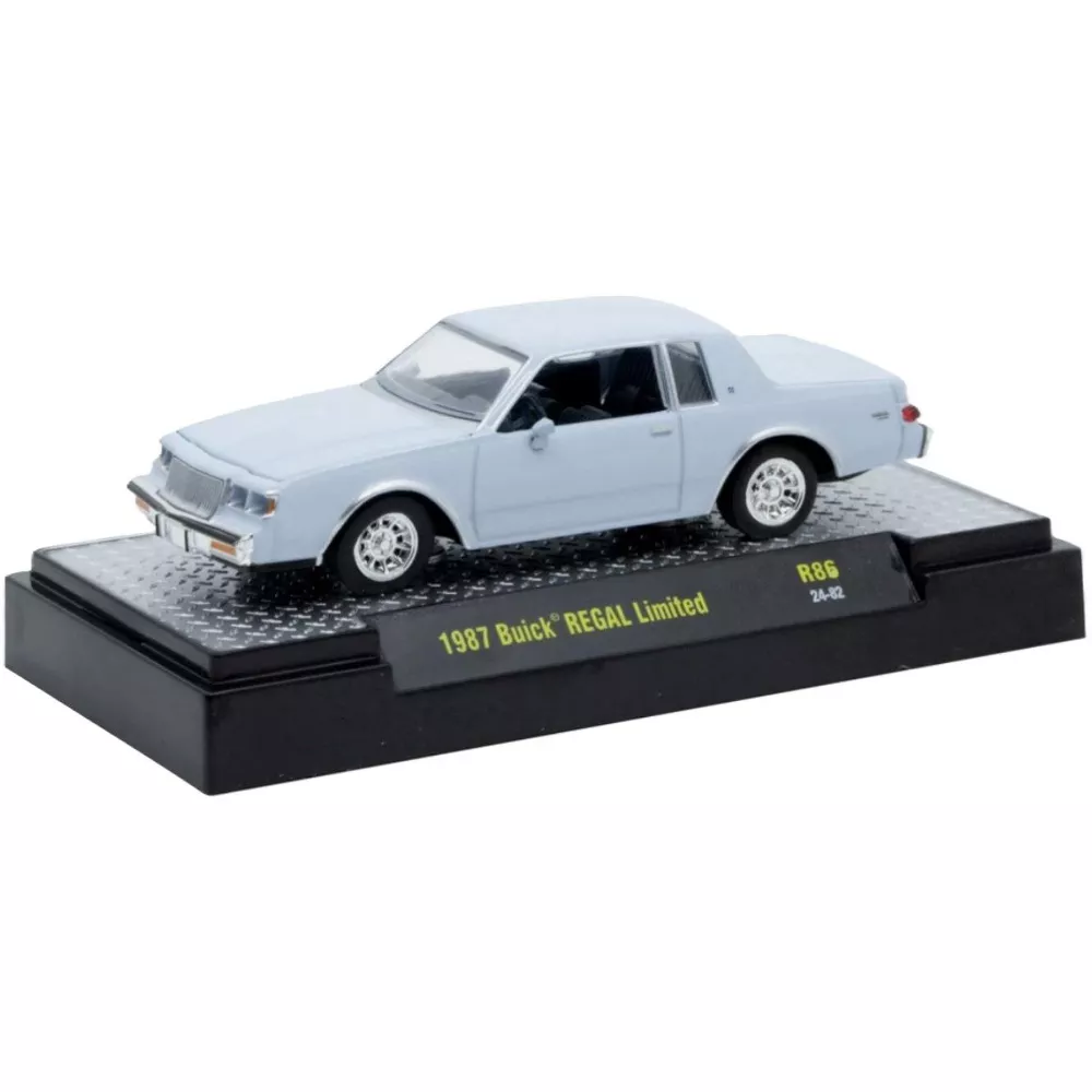 This M2 Machines Detroit Muscle Series 86: 1987 Buick Regal Limited R86 diecast car is a must-have addition to any collection. The vehicle make is Buick, and the vehicle type is a car. The car is light blue in color and has a 1:64 scale. The material used to make the car is diecast, and it was manufactured in 1987. The brand of the car is M2 Machines, and the series is Detroit Muscle.
