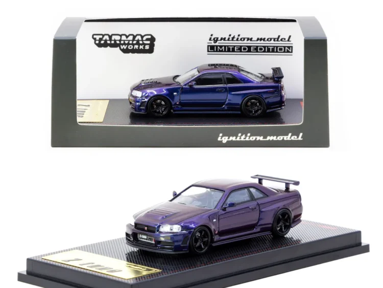 Brand : Nissan Model : Nismo R34 GT-R Z-tune Description : 1/64 Nismo R34 GT-R Z-tune, purple metallic Manufacturer :